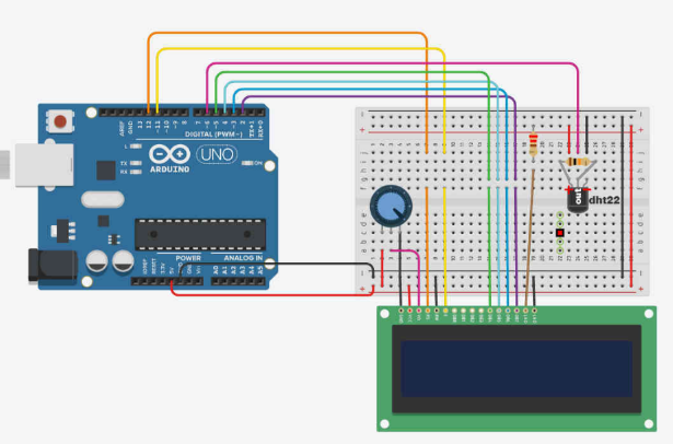1. Incluir Librerías: Se incluyen las librerías necesarias para manejar el sensor DHT y la pantalla LCD.